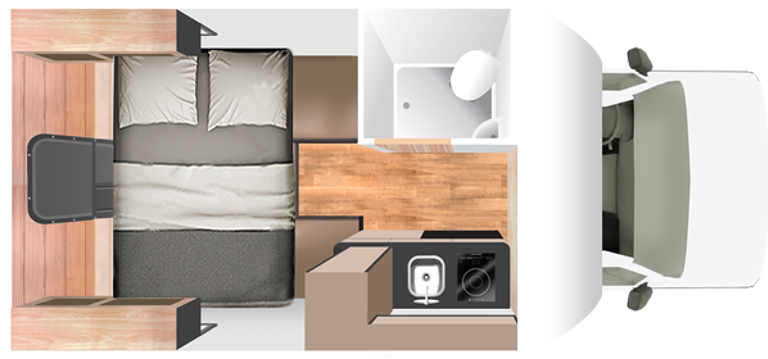 Onderstaand vind je de plattegrond van de camper.